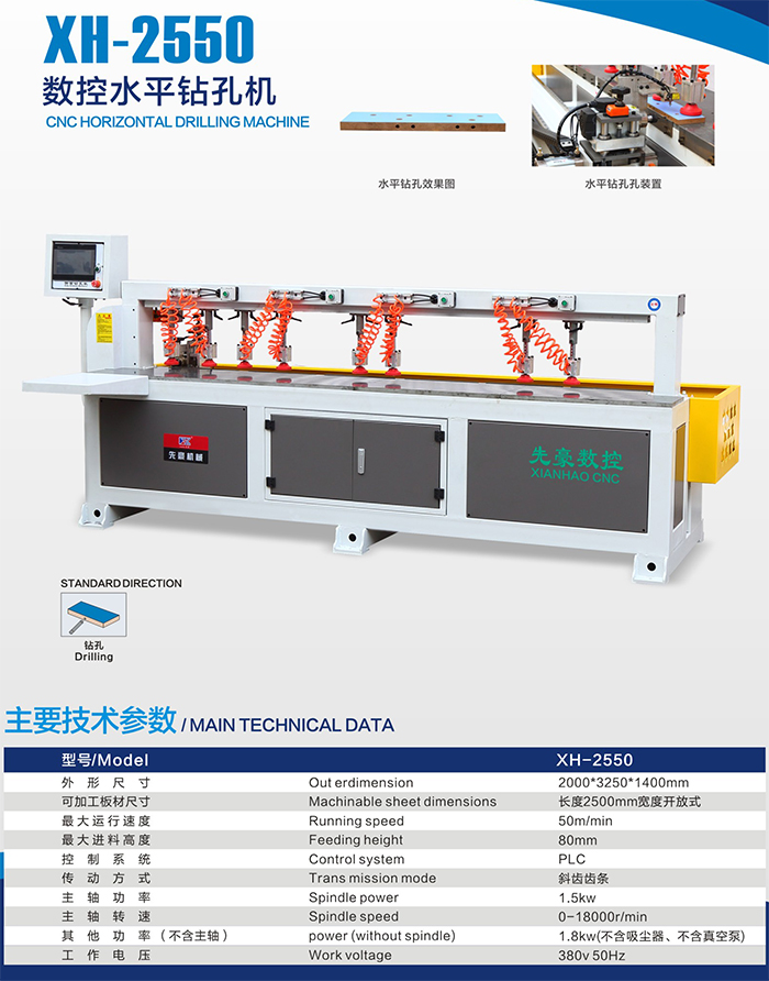 产品名称:XH-2550数控水平钻孔机